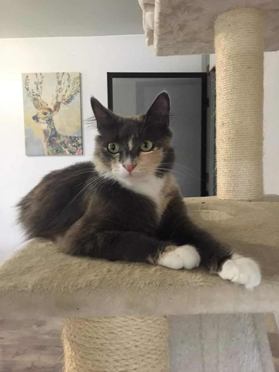 Raya would be fine as an only cat, or with one or two cat siblings. A home with no young kids would be preferred. She has had all vetwork done.