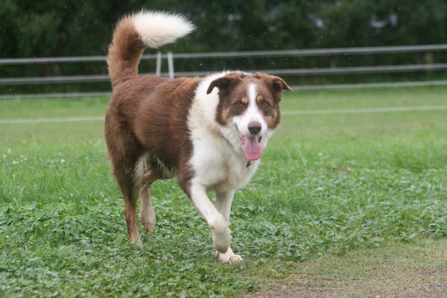 Charlie is a 7 year old Chocolate and White Border collie. He came into rescue due to a family separation. He has previously lived with female Border Collies. He is now living with a male Beagle pup and lots of smaller dogs . He is respectful with the older dogs and plays with the younger ones