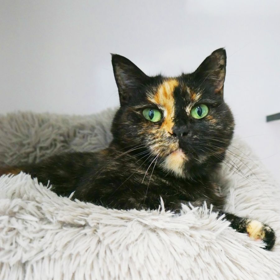 Mew is a beautiful lady both inside and outside. Once settled you will find she is affectionate, gives the best cuddles, loves her toys and of course as with most Torti’s she is determined.