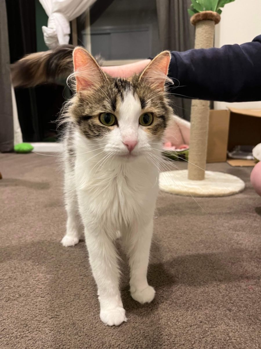 Do you want to be greeted with chirps and headbutts everytime you come home? Do you have space for a fluffy cuddle-monster duo? Princess and Posie came into care from a rural pound, but that certainly hasn’t dampened their spirits. They may take a couple of days to settle in, yet once they do these girls are the sweetest, smoochiest cats you’ll ever meet. Princess will headbutt you for kisses on her noggin, and Posie will chirp until you pick her up so she can be bounced gently like a baby.