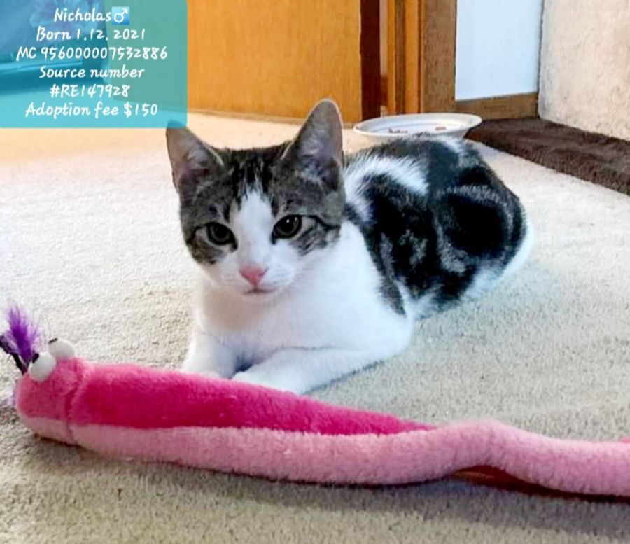 Or someone who is home or has a current cat friendly pet to keep him company during the day as Nicholas has not been alone since coming into foster care.