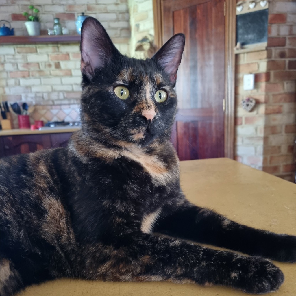 Turtle is a confident and fun loving girl. She makes friends very quickly and seeks out cuddles and company, happily following you around to check out what you're doing. She is ok with being picked up. Turtle has a playful and inquisitive nature and is an active cat. She Loves to sit next to you and lay on your bed at night. She has a lovely purr and a very quiet meow. Turtle is easy care. She loves her food and uses her litter tray well. She's quite a large cat - more to love! ❤️