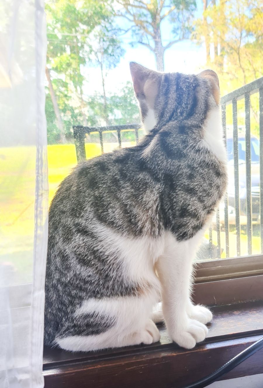 Sadly i was dumped by my previous owners and was found in a fox trap before coming into care, as you can see i hurt my face trying to get out of the trap but i am ok and healed well with some minor scaring. My favourite place is in a windowsill so i can watch the outside world.