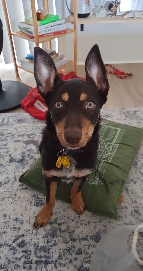 'Midnight who also goes by the nickname of Middy is a highly loving and energetic pup. She is incredibly smart and loves constant attention and stimulation. Given her high energy, having a large back yard that she can run around in would be highly recommended. She is also the type of dog that would be better suited to a person or people who can spend time with and engage with her. Middy has a massive love of people and loves everyone she meets. She also loves other dogs and would also love a canine sibling that she can play with.