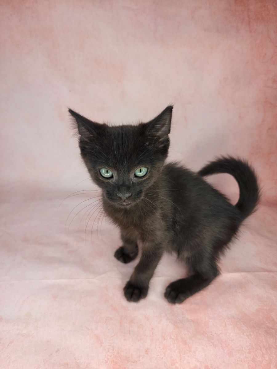 Licorice is a beautiful all black kitten who absolutely loves human attention. He will purr the second you start patting her and holding him. He also loves to play with anything he can get his little paws on.