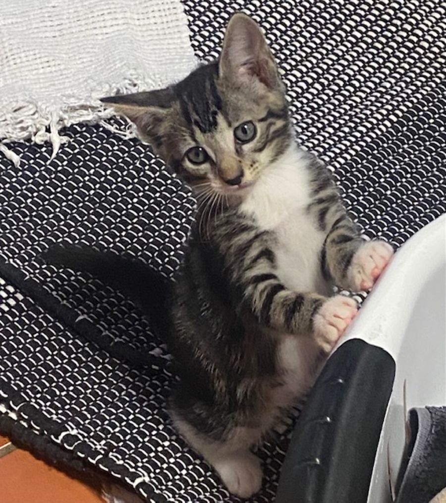 He has great fun with his brothers and sisters who are also up for adoption and has a special bond with little Rosie. His favourite things are playing chasey, eating, having cuddles and playing in the cat tree.