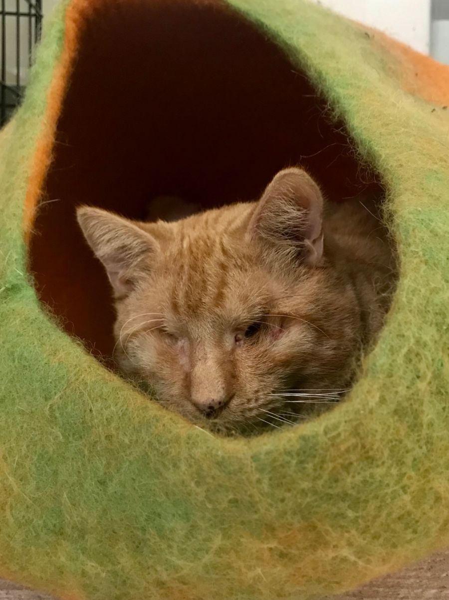 Joshua was rescued living on the street and influenza had taken his eyesight to the point we had to remove his eyes. He has coped well and is responding well at his foster home.