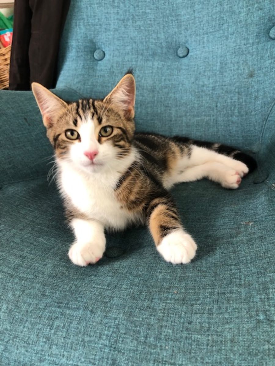 Bud and Joey are beautiful 18wo male kittens available for adoption in Beaumaris. They came to their foster home as a litter of five male siblings and boy have they been balls of cute energy! The kittens have been comfortable living in a busy family home environment with school-aged children and resident dog, and will easily settle and adapt to most households. Bud acts like the big brother; he likes to sample food and experiences first. A gorgeous tri-colour tabby, Bud uses his squeaky voice to get your attention. He absolutely loves the resident cattle dog at his foster home, and they would be comfortable going to a home with a dog. Joey is most curious about the outside world and would lead adventures if there was an outside cat run in his forever home. The benefits of adopting a bonded pair is they will settle in their home quicker, they’ll get rid of lots of energy play fighting with each other rather than your furniture, and you needn’t feel bad about the kitten being lonely during periods where work or study keeps you occupied. If you have the space in your heart and home for a beautiful bonded pair of kittens to keep you and each other entertained then Bud and Joey are looking forward to meeting you very soon.