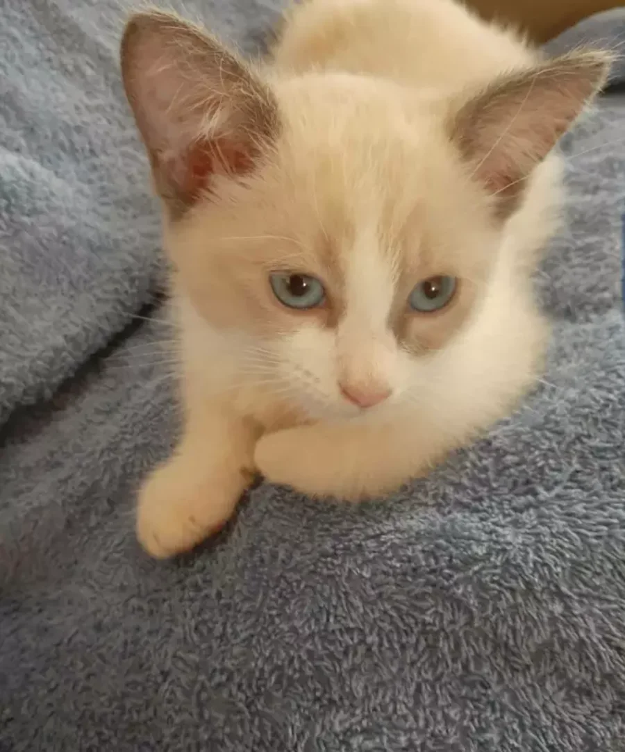 Maggie a a beautiful light brown & white girl with grey ears and tail and stunning blue eyes!