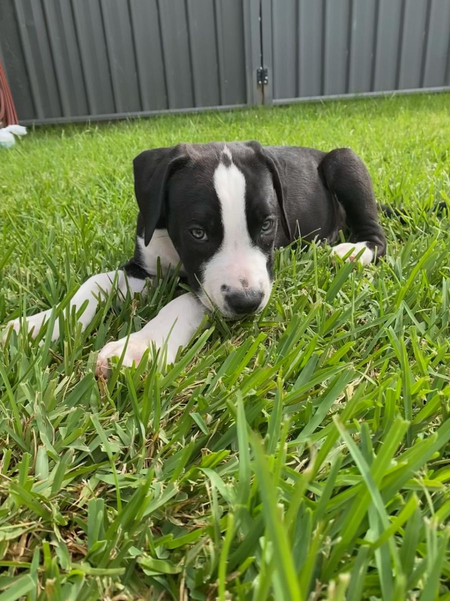 Meet Phantom, a gorgeous 9 week old boxer x staffy puppy. Phantom is a big puppy with a beautiful gentle nature. He is a happy, healthy boy who is growing and learning very quickly. He is very playful and loves a good wrestle with his brother. He is an energetic boy who loves to go out and play with his much bigger foster brothers.
