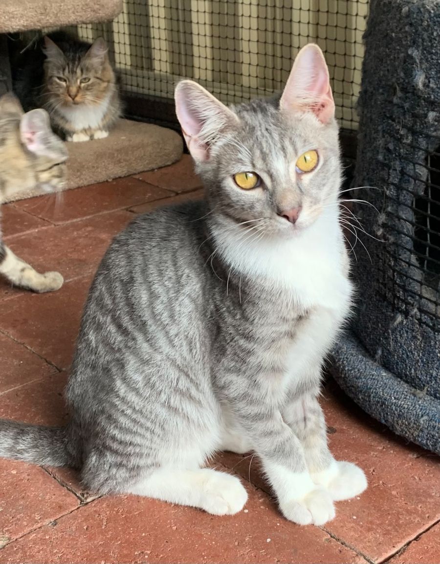 Jackson is waiting for you to come and play. This 5 month grey & white tabby boy just loves his toys, chasing balls and trying to catch the mouse on the string. Once the playing is done, he will happily snuggle up for cuddles (he has a lovely little purr) and an afternoon nap, before playtime begins again. While in care, he has been surrounded by children, other foster cats and the resident dog, and would make a perfect addition to any family. He is litter trained and not a fussy eater. He comes desexed, microchipped (#941003000433207), vaccinated, wormed and with flea prevention. Located at Gorokan for Claws n Paws Rescue 💙