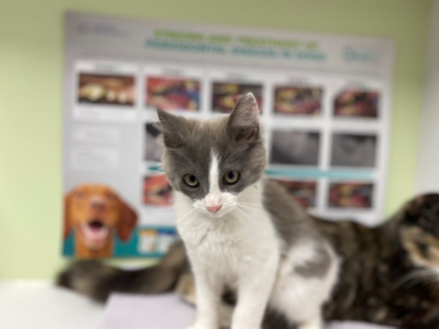 Gigi is a 17 week old Male Grey & White Domestic Medium Hair Kitten.