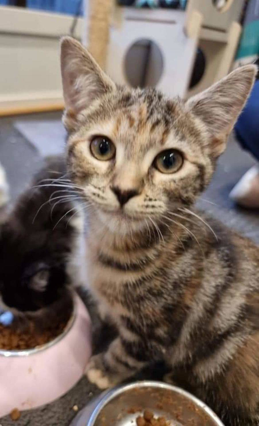 The first thing you notice about Gizmo is her stunning uniquely patterned tabby coat followed by her purry affectionate and playful nature. She loves to play with toys and can often be seen carrying them around in her mouth.
