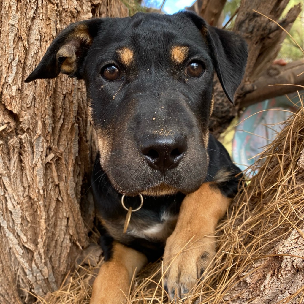 Hi! I'm Jinx and I'm a cuddle bug! I love to snuggle with my humans and I like to sneak into your lap when your not looking! I also have a lot of puppy energy so I'd love to walk every day! Playing with other dogs at the dog park is also my favourite! If you want me to sit or learn new things, I'll happily gobble up the treat you offer me! I also love my chew toys as I'm loosing my puppy teeth to grow my big dog teeth! I've also been told on more than one occasion that I have the smooshiest face ever, even the vet asked if I had eaten a bee, but it's just my face!