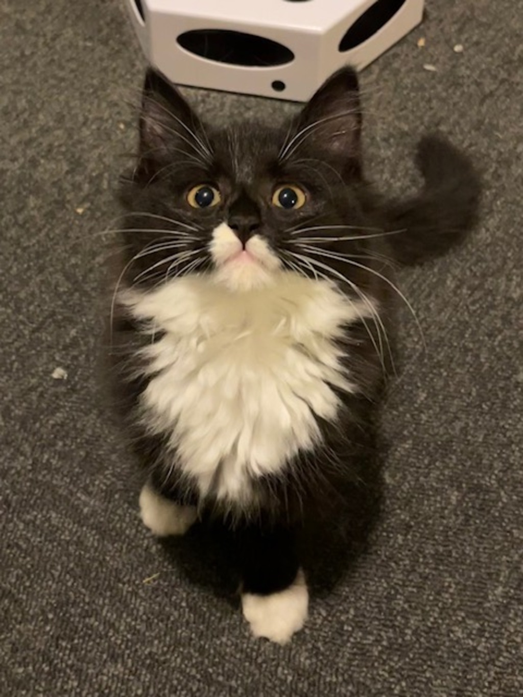 Tuxie is a delightful young kitten. She came to us from a terrible situation and is now safe. She is in foster care with her 2 sisters Gingery and Pippa and her brother Soxy. She may be a little shy when she firsts meet you but doesn't take her long to come around and award you with lots of purrs. Tuxie is in foster care in Doonside and will come desexed, vaccinated, microchipped, flea and worm treated plus life time registered.