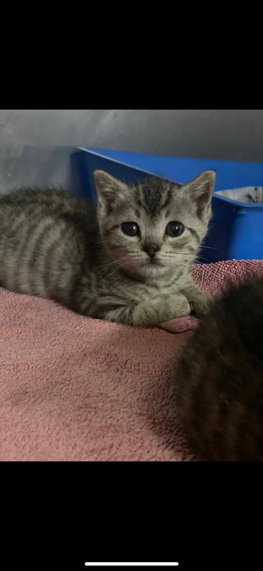 Monty and his littermates had a very rough start to their life, and for quite a while where growing at a slower rate than other kittens their age. Montys' veterinary team has treated the litter for parasitic burdens which can play a part in slow growth in kittens, and they are all growing - just at a slower rate than others!