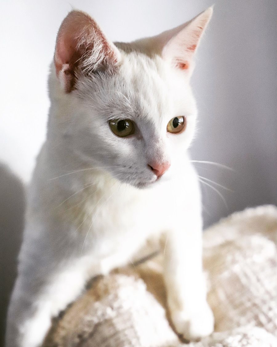 Please note: It is suspected that Sky is deaf, unresponsive to loud noises and voices. This however does not impact her in any way to live a normal life. She just must be kept indoors.