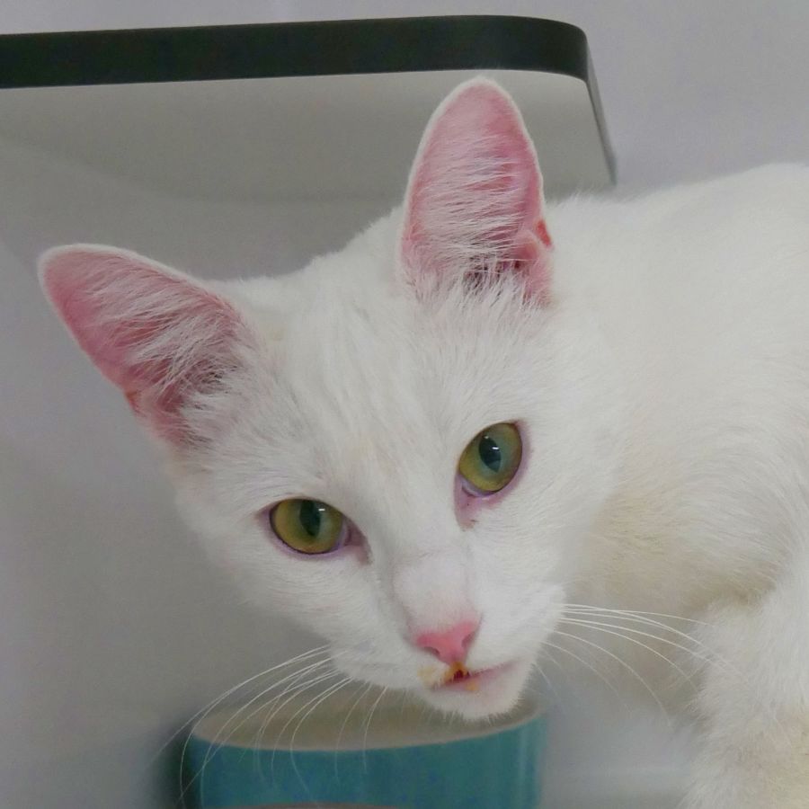 Ernestine is deaf but that does not stop her keeping busy and into everything. She must be indoors only for her own safety in a home where she is the only feline family member.