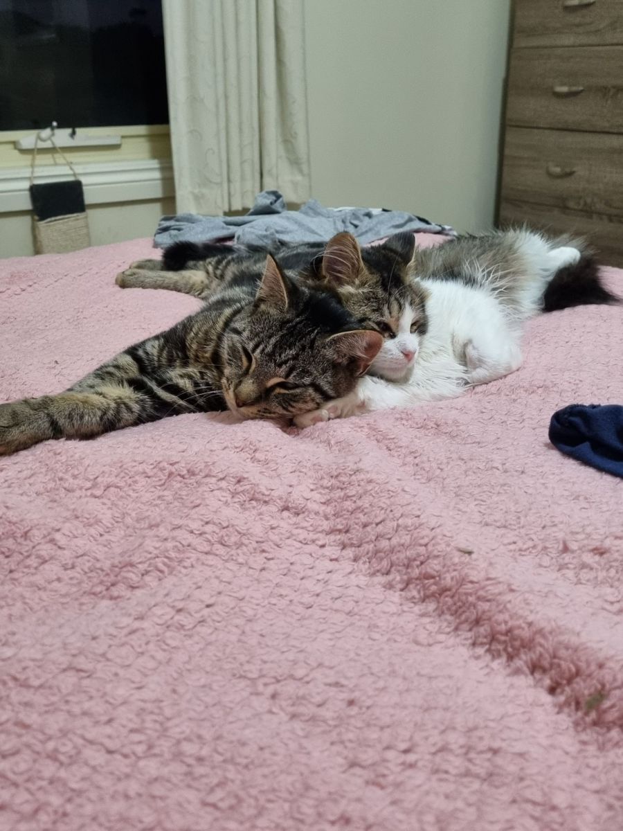 Stanley is honestly the PERFECT cat! He has been an absolute delight to foster and I will miss him dearly, there is nothing bad you can say about Stanny, he is loving, happy, relaxed, playful, funny, affectionate etc the list goes on, he gets along with EVERYONE including kids and strangers and other cats. He currently is in foster care with a variety of other cats and is happy! He has had new kids come over and pick him up and cuddle him and he was not bothered at all and let them carry him around like a dolly, He spends every night on the bed with us and purrs and "makes biscuits" on the fluffy blanket all night, he will stay in bed with you until you get up and then do zoomies around the house playing!