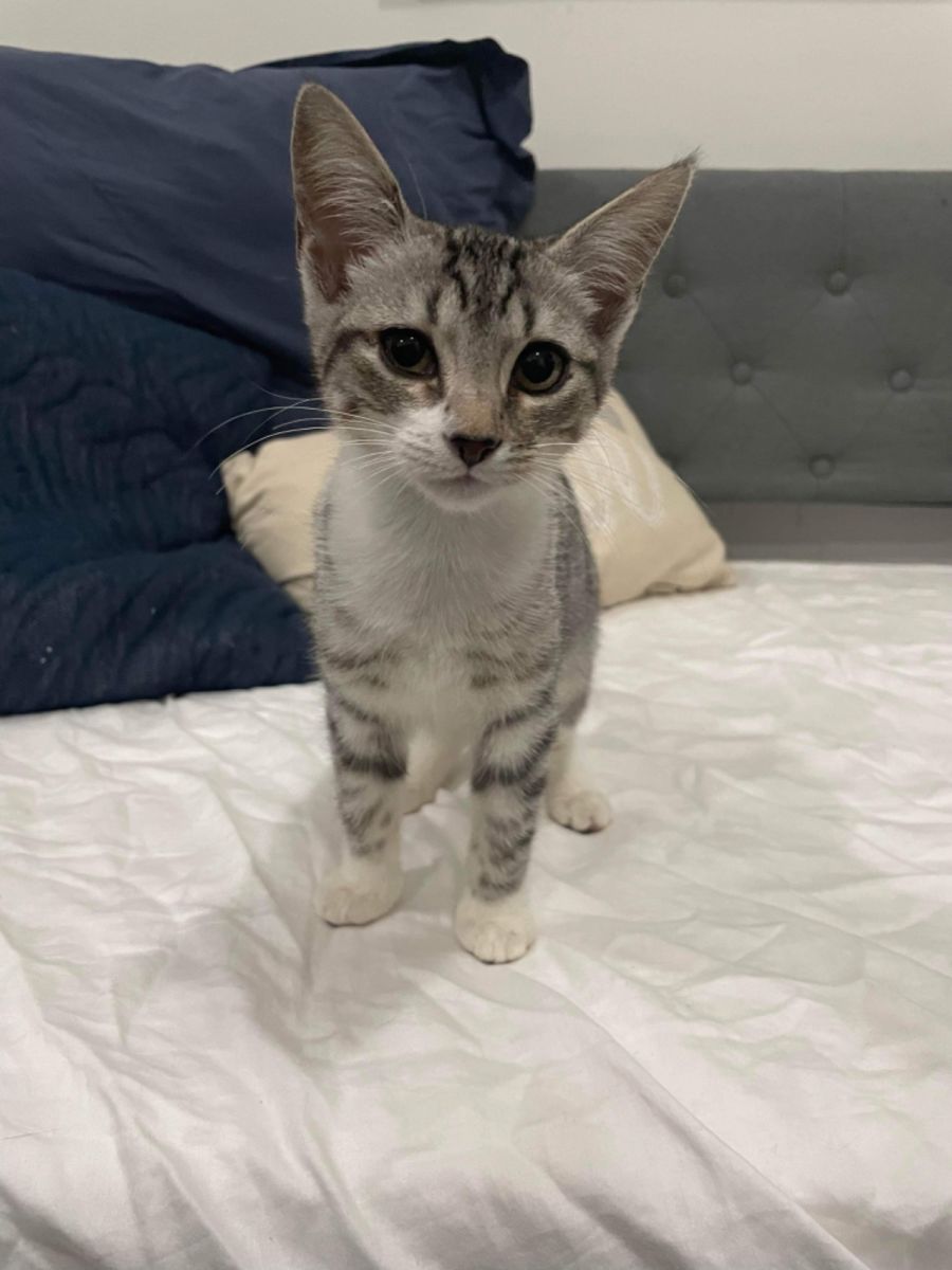 Fennec is a 13 week old Female Silver Tabby Domestic Short Hair Kitten.