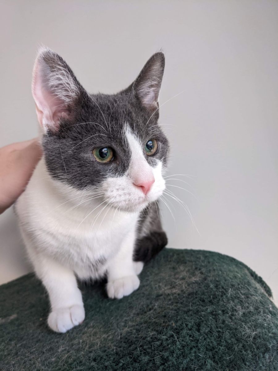 Meet Frankie, he would like to apply for the job of being your best friend. He thinks he has all the qualifications - bright eyes, a big meow, a soft grey coat and a heart full of love. He is a playful fellow, and so will keep you entertained for hours. He loves playing with every toy we have shown him, as long as you are there to play with him. We think he would be perfect for someone who works from home, or a family with some kids to tire him out. He plays well with other cats, although he needs a few days to get used to them before he caves in and starts playing with them. He has not been tested with dogs. He will need to be an indoor only cat, as he is likely to get overstimulated and bolt off into the sunset if let outside. He is truly a sweet and loving cat, and he will be a dedicated best friend for years to come. Apply now if you have a job opening in your heart.