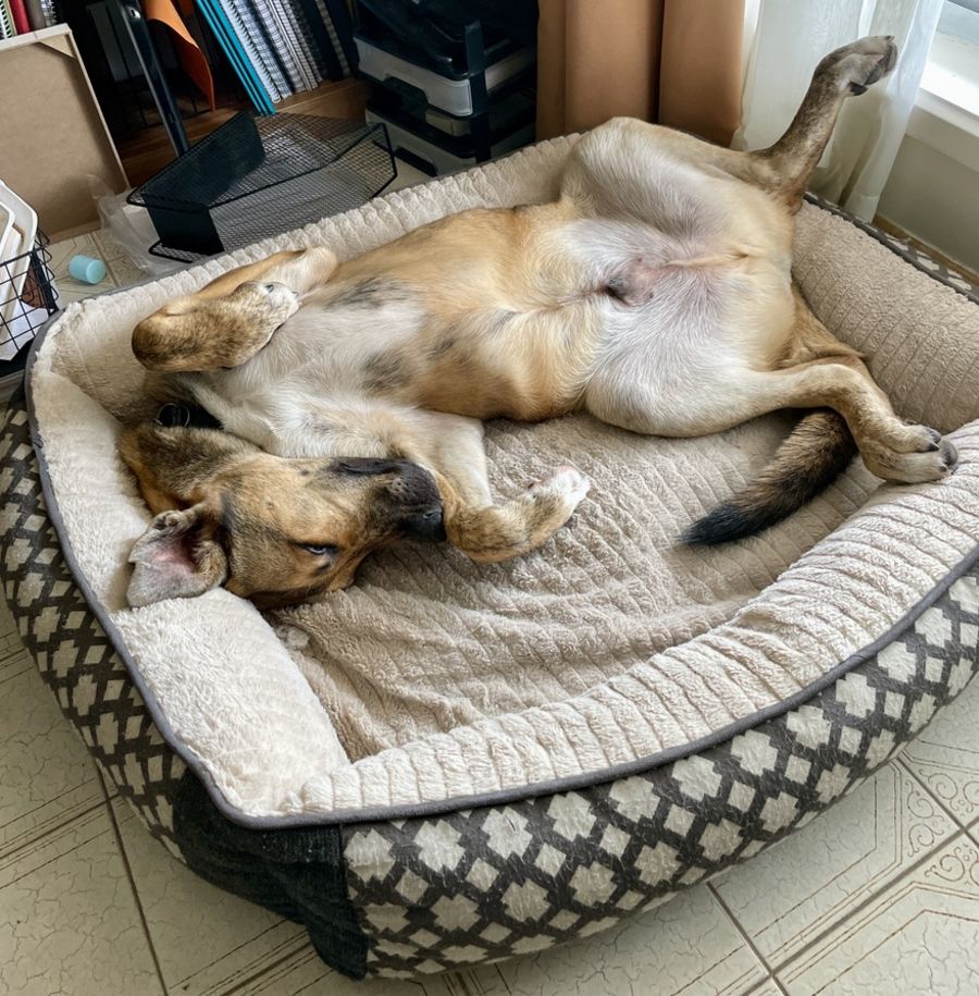 During the day, Rex is also happy to snooze in the home and equally happy napping in the sun. He likes his 1-2 daily walks for at least 30 minutes on the walking tracks.