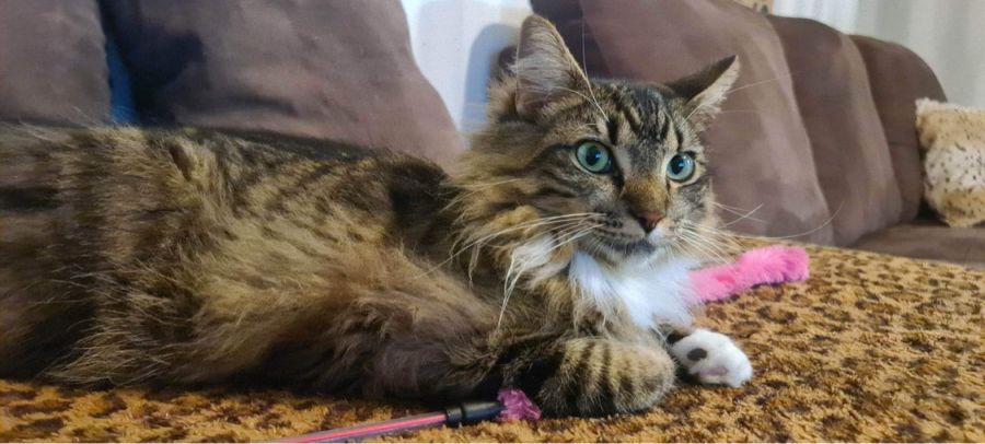 Shaka is a stunning male cat who’s sure to turn heads with his fluffy coat and striking green eyes. While he may be a little shy at first, once he feels comfortable, his playful and affectionate personality shines through.