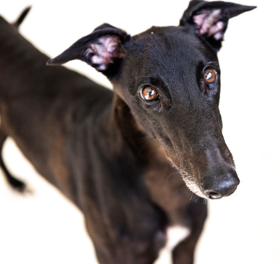 Breeze is a female greyhound, who loves everyone and everything, is extremely affectionate and just a joy to have around. She currently shares her foster home with an older female greyhound but is friendly to all dogs she meets on walks and could live with different breeds, although a calm and gentle doggy friend would be best.