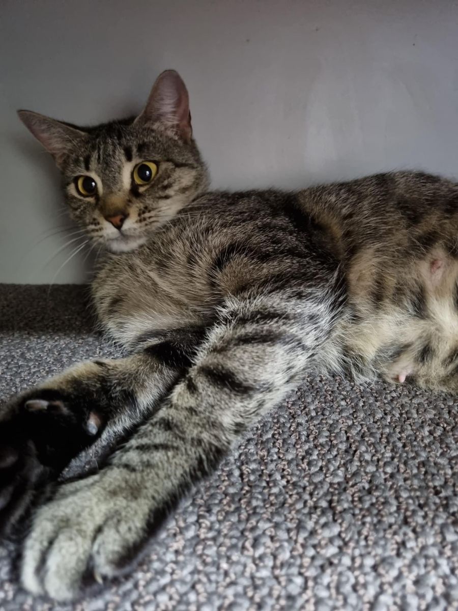 Judy is lean and agile cat and would benefit from a large catframe scratch post to play on. There will be no place unexplored in your home as Judy is the Queen of curiosity and will provide you with hours of entertainment.