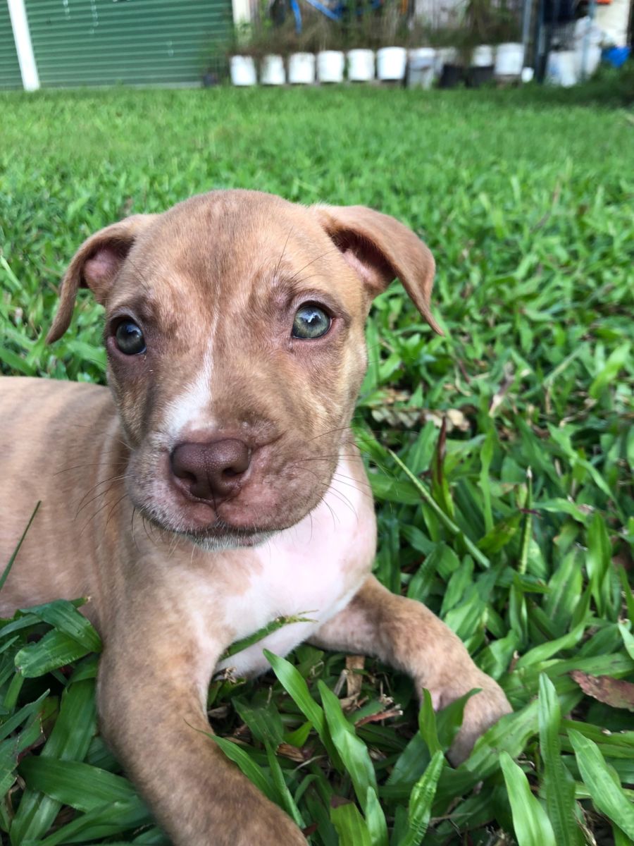 I love belly rubs and snoozing in the sun! I’ll happily sit by your side, I love company and having a good play. I’m a bit more placid then my siblings and am quite well behaved. I have pretty brindle markings on my back, a little white strip on my nose, white chest and pretty green eyes. I’m looking for my forever home, do you think it could be your house?
