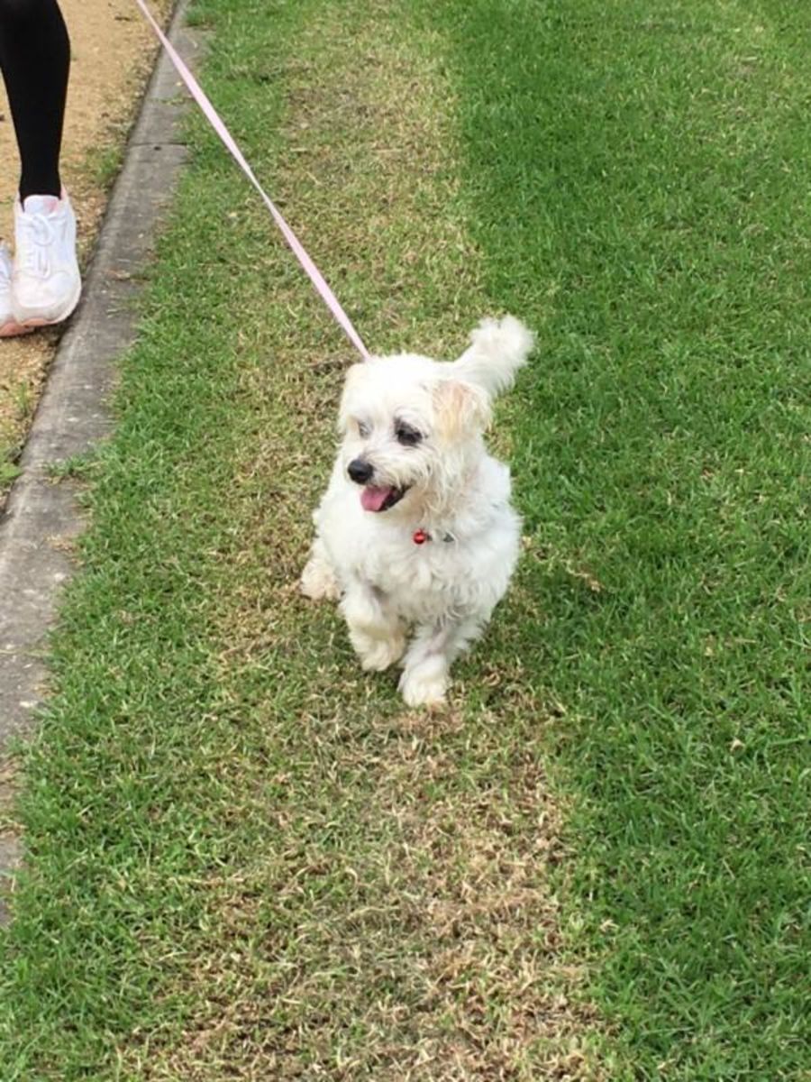 Teddy was rescued from the pound and was a little neglected he's had some work done to his teeth and lost a few along the way. He is partially blind and is also deaf. But he hasn't let any of that get him down.