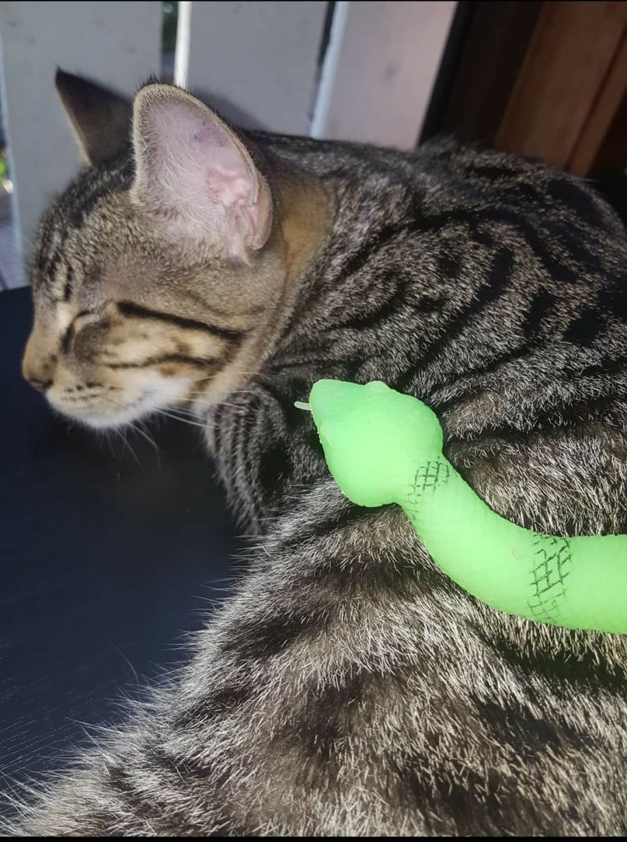 Tiger was only 3 weeks old when he came into A Mini Rescues' care along with his 4 other siblings just before Christmas. He is a little love bug and if hes not snuggling up to you, he can be found snuggled up with his siblings by a window or on a comfy bed. He adores his foster fur brother Solar and together they are very entertaining.