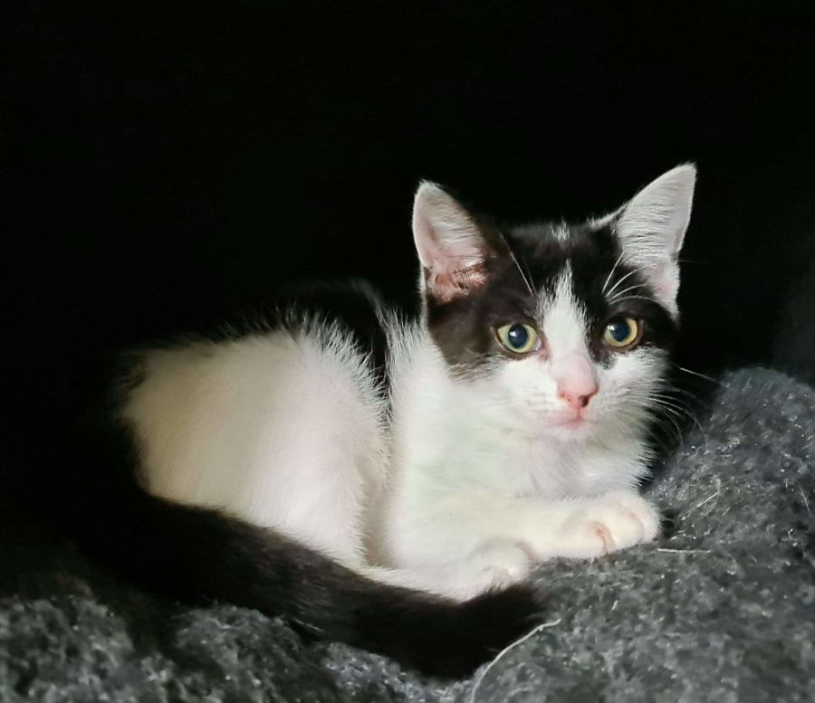 She needs to be kept indoor only and we think she will be a smaller cat when she grows up as she has little paws 🙂