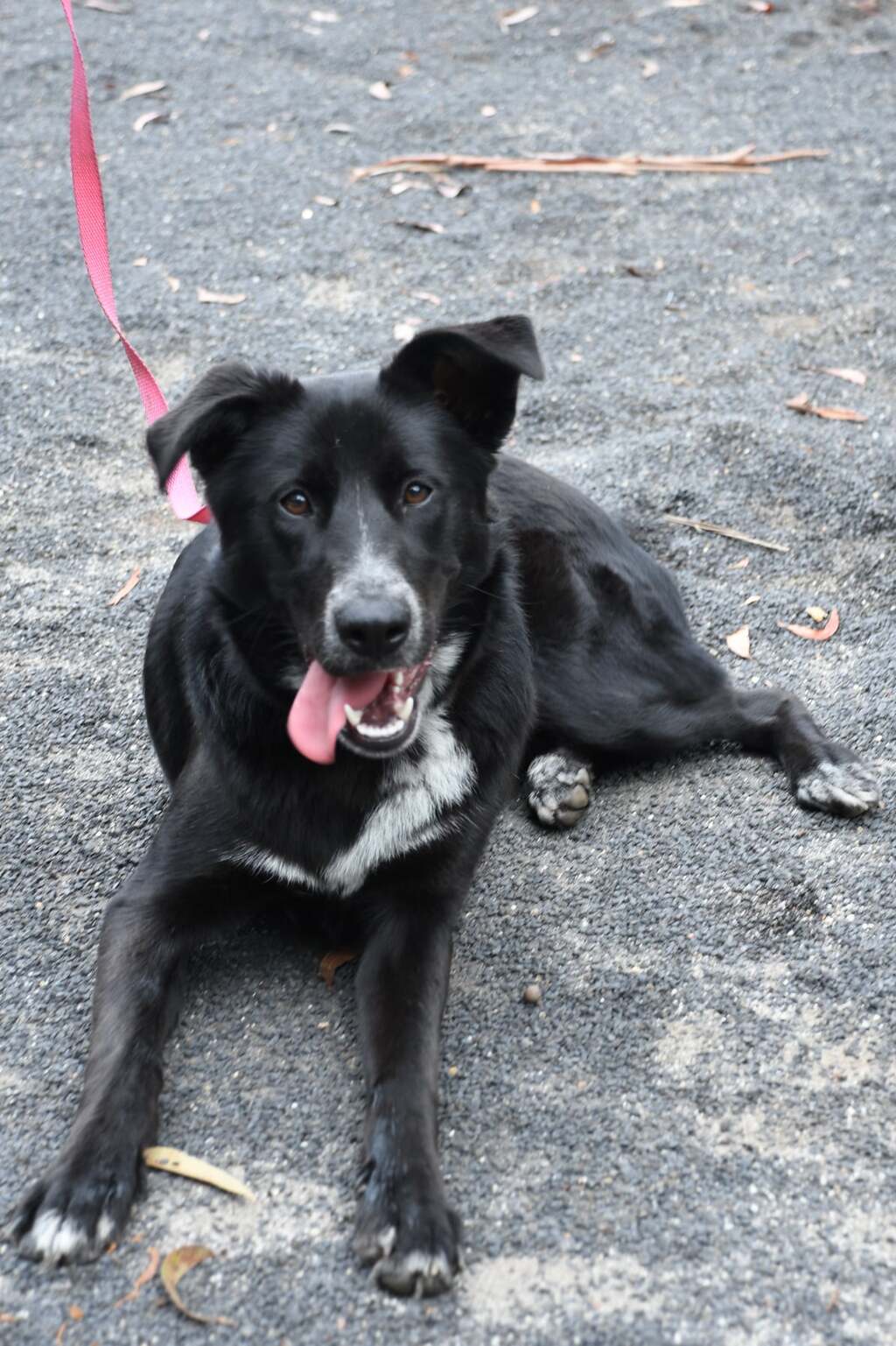 SQUIGGLES #2814 is a very attractive & affectionate 10 m female black & white Kelpie/Maremma. She is great with other dogs & respectful of even small children. After she's burnt off her energy, she's happy to lie around snoozing. She's definitely not suited to stock or chickens or small animals. Currently she is in foster care in an urban area with a large area for playing with the other dog. She has been off leash at the beach where she had a great time & her recall was good. She will benefit by obedience classes or an experienced dog owner who can help her develop to her full potential.