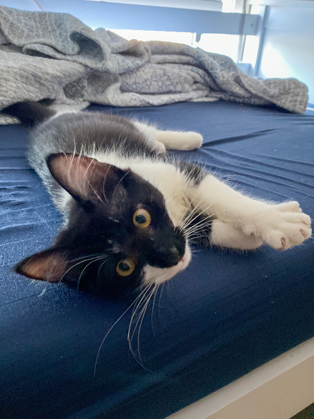 If you are looking for a cuddly kitten you can't go past Butler. He only has to look at you and his little feet start kneading the floor with excitement. His favourite spot is wherever you are.
