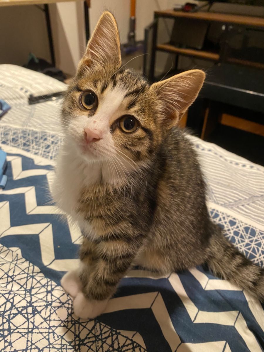 She likes other cats and would not mind a home that has another cat or two that she can play with.