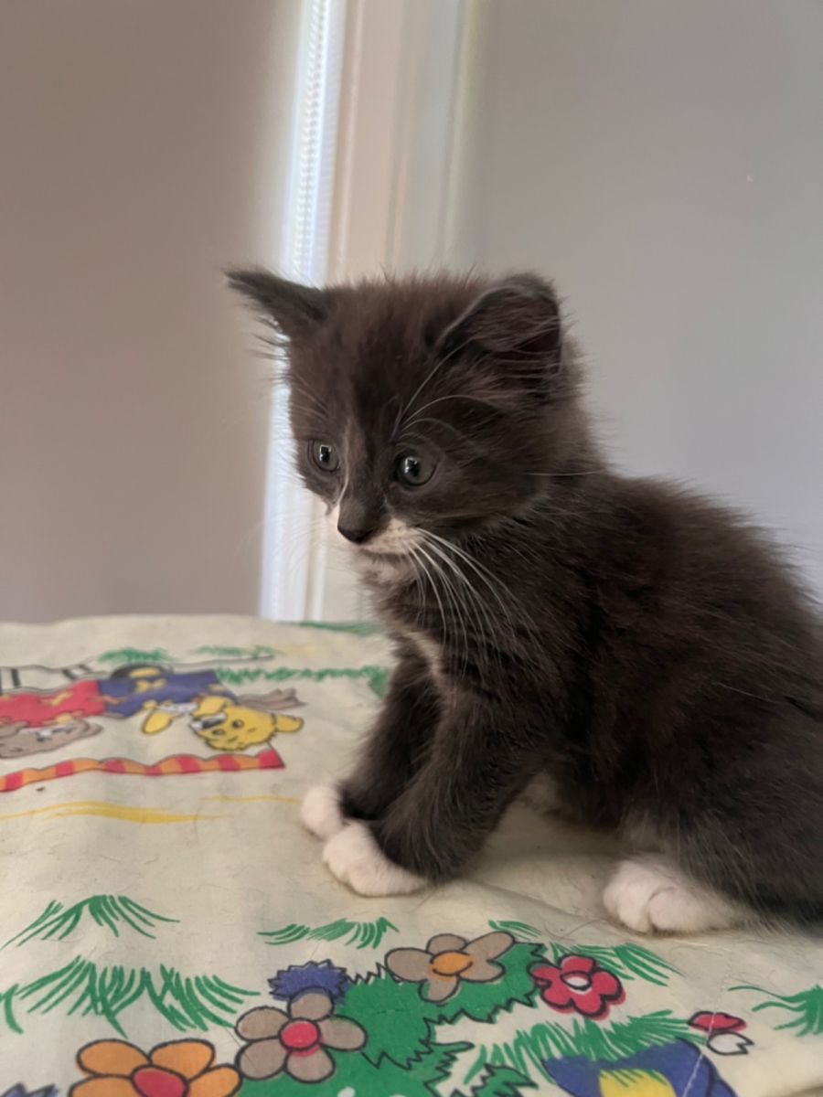 Bluey is a tad shy. But once he feels comfortable he’s a little purr machine. Loves to play with the other kittens and loves to curl up for a nap.