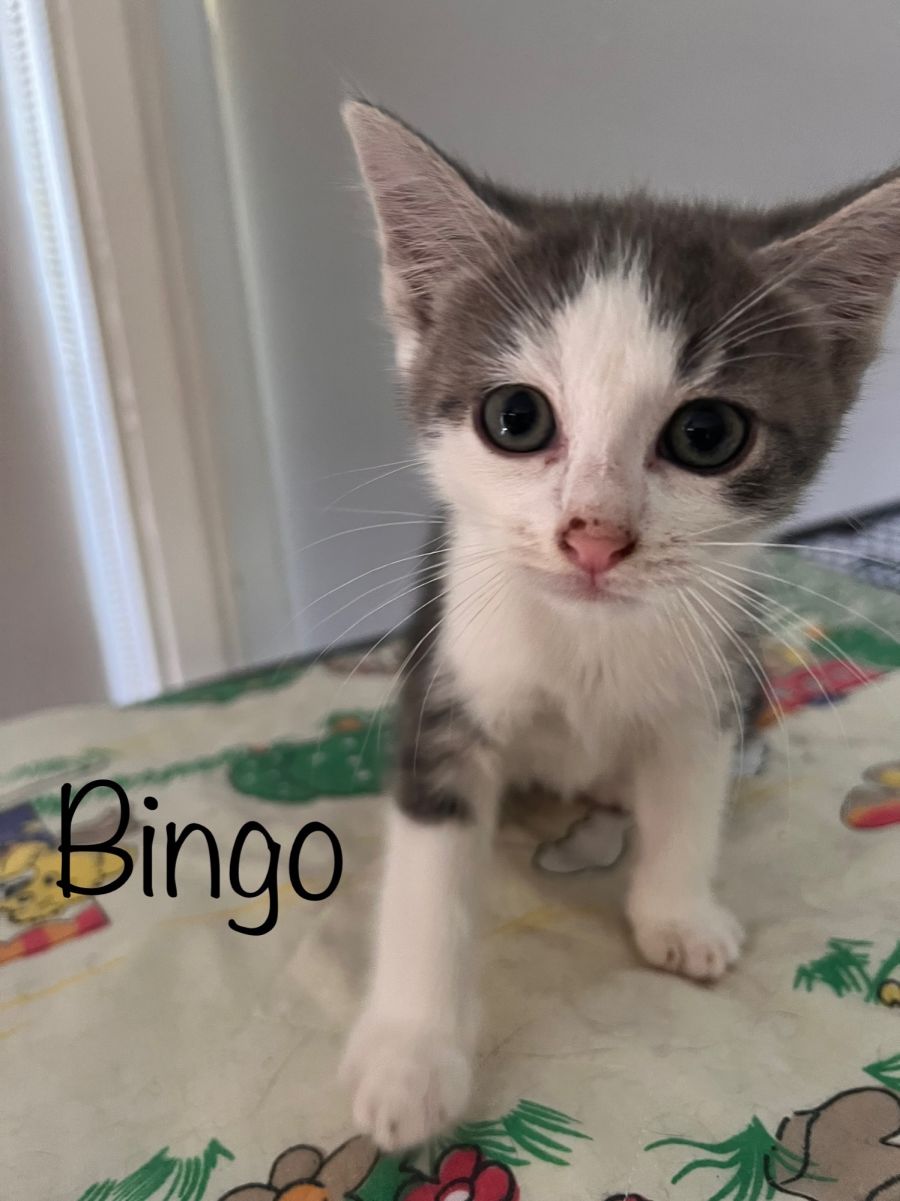 Bingo is more outgoing in personality, loves play fighting with the other kittens, loves cuddles and kisses.