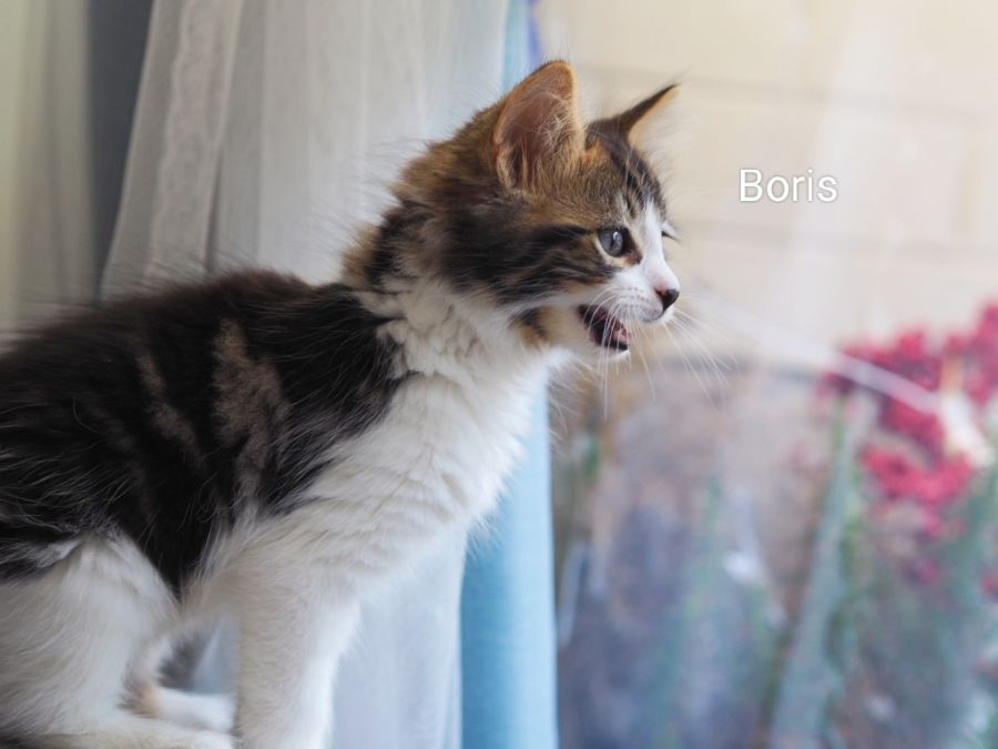 Hello! My name is Boris I like to observe what is going on around me. You can always find me sitting in the window watching what is going on in the garden and soaking up the autumn sun. I'm sure my foster carer is convinced I am a bower bird. I have a special hiding place for all my favourite things including the pink teaser wand toy. The other day my bro Tigger and my foster carer were looking EVERYWHERE for it, I had found the purrrrfect hiding spot. I love to hind myself in boxes, I have even been found asleep in them. Tigger and I play chassey during the day, he can always find me. At the end of a busy day I love nothing more than to sit on the couch with my human and receive a back scratch.