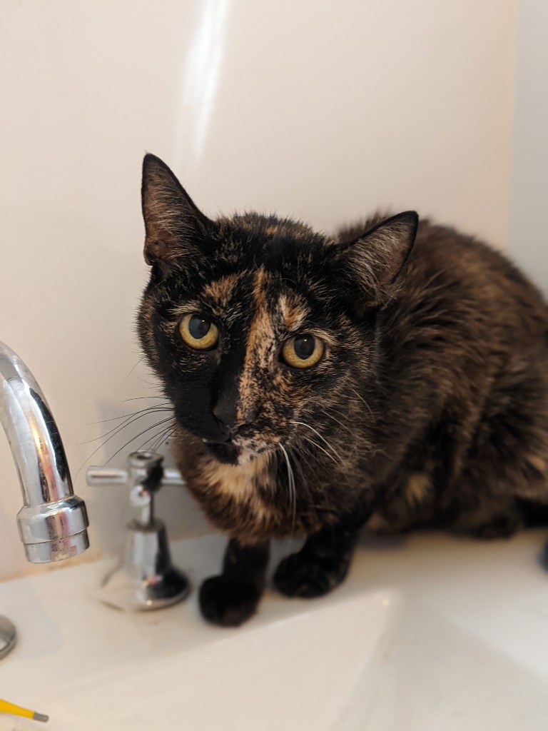 Ally also loves a pat and enjoys being fussed over, but she's a much more reserved and quiet kitty. She is easily startled and has a perpetual look of concern on her face!