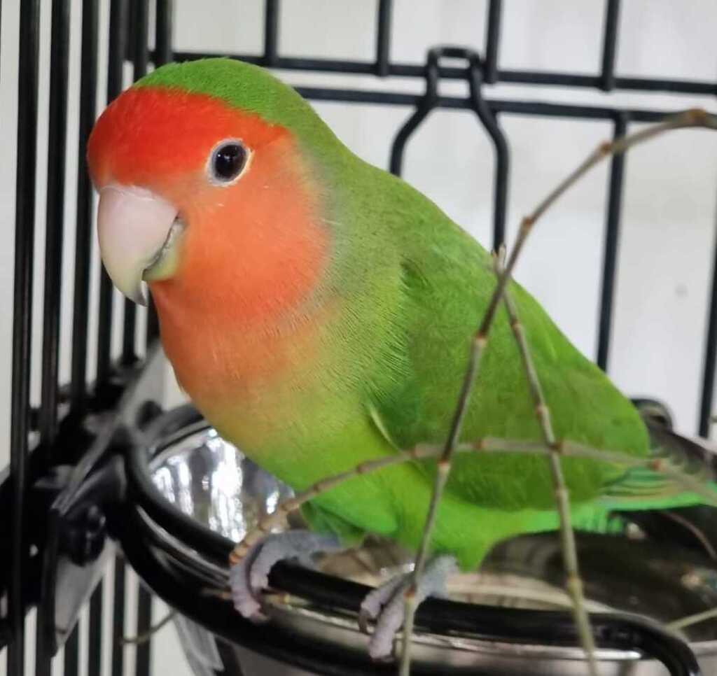 Grape is a placid and very aesthetically pleasing little Lovebird who is looking for an owner with plenty of Avian experience. This boy LOVES his greens and can be seen munching away on kale happily.