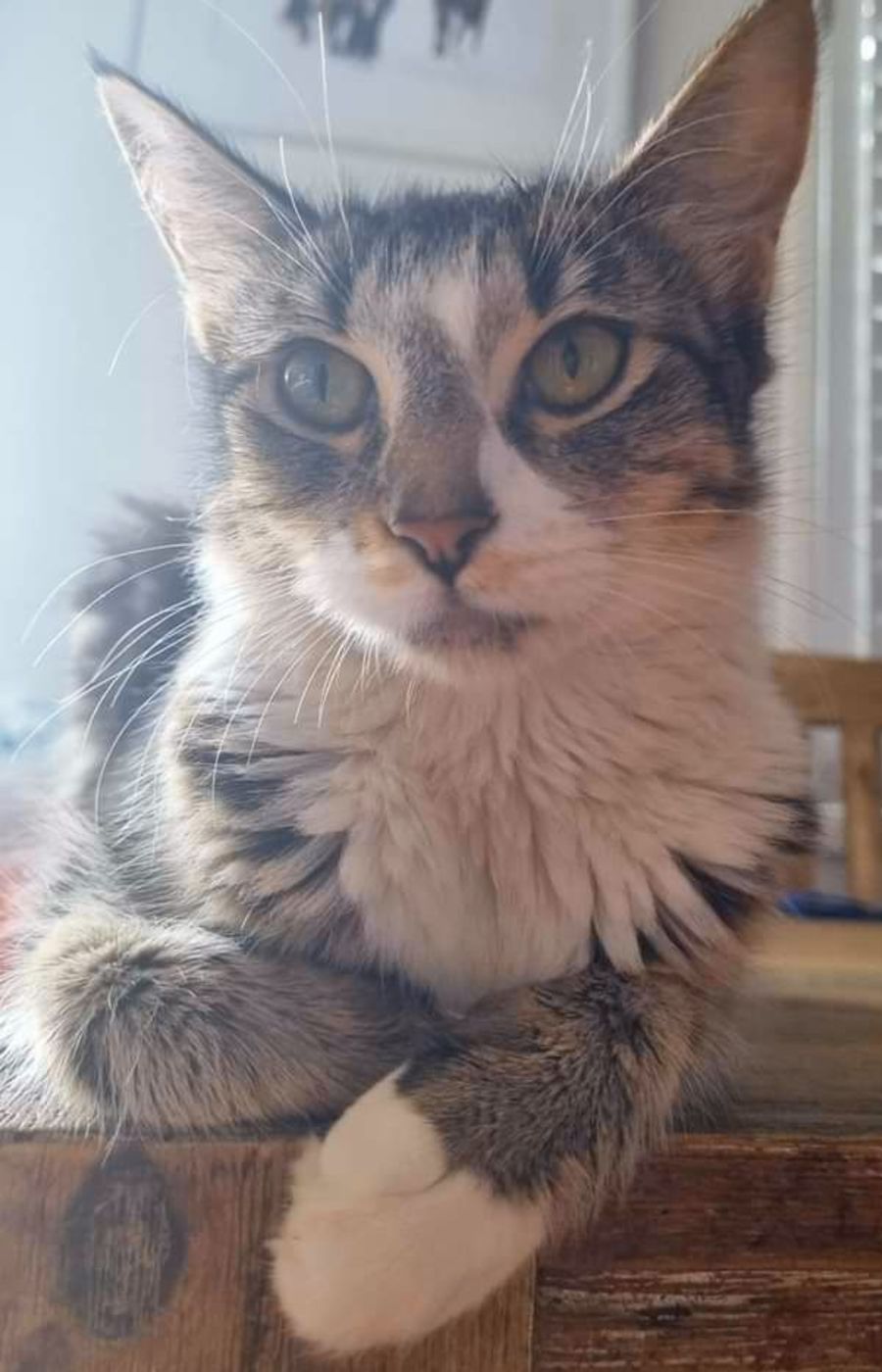 She is very cuddly and has a little chirpy meow to greet you ,and has quite a calm nature . She's got quite a small frame with a very long floofy tail . She is not fazed by children dogs or cats and takes it all in her stride