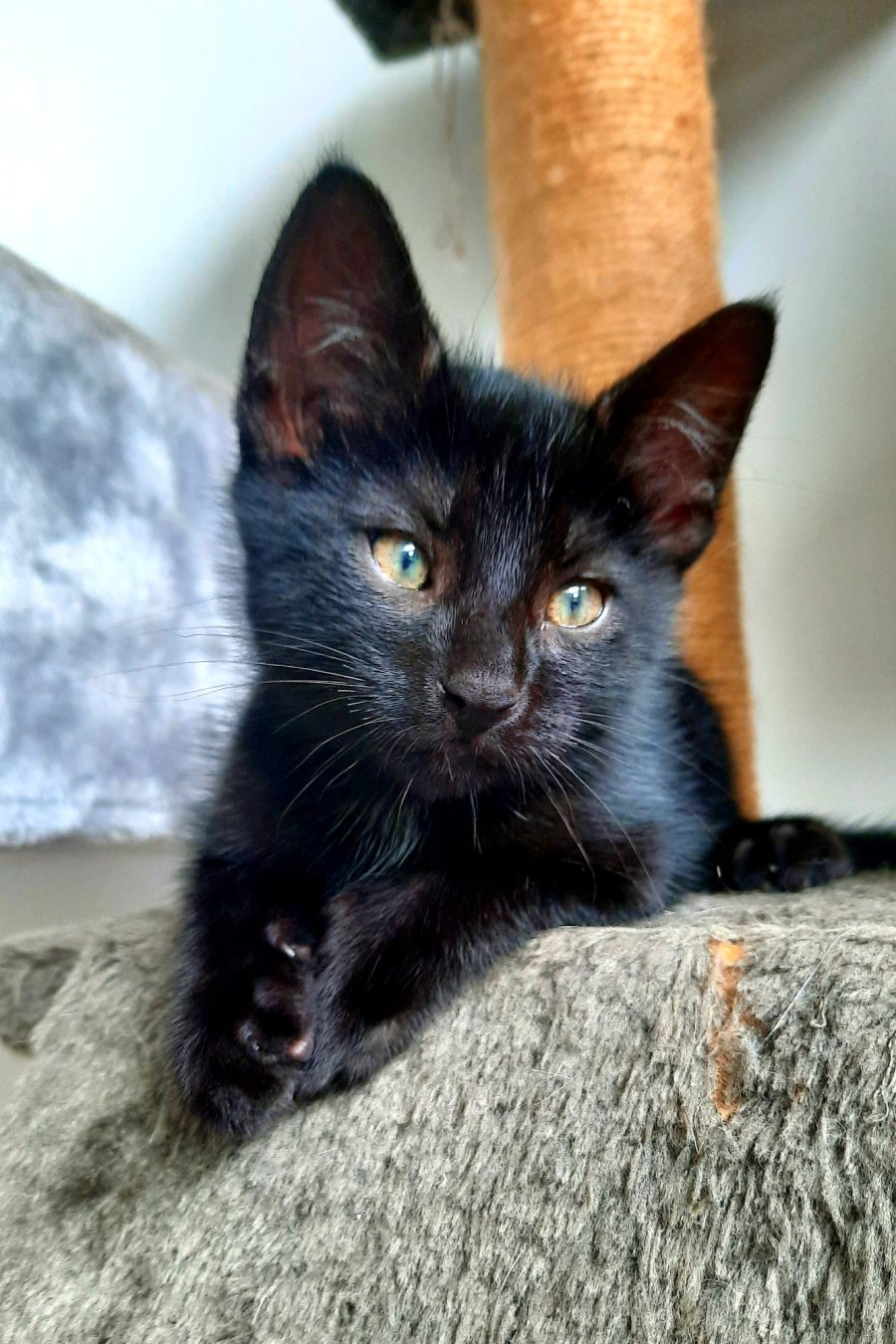 Cookie is a very sweet little boy who loves a good snuggle and purring session with any willing human! He gets on well with other cats (big and small) and likes to bounce about playing chasey or hide-and-seek.
