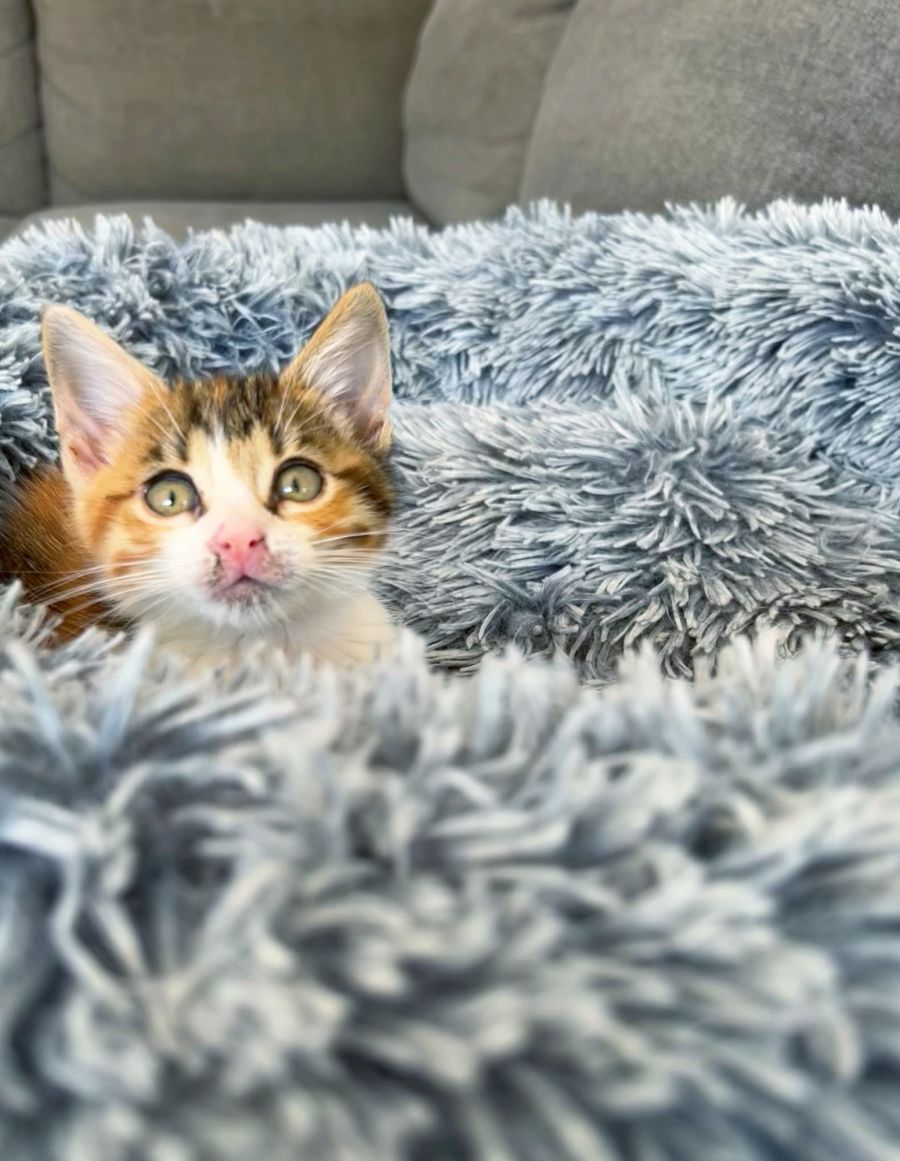 Evangeline is well socialised with other cats as she’s grown up with 9 fosters and the 3 resident cats and loves to get amongst all the kitty chaos in her foster home as she thrives off cat companionship.
