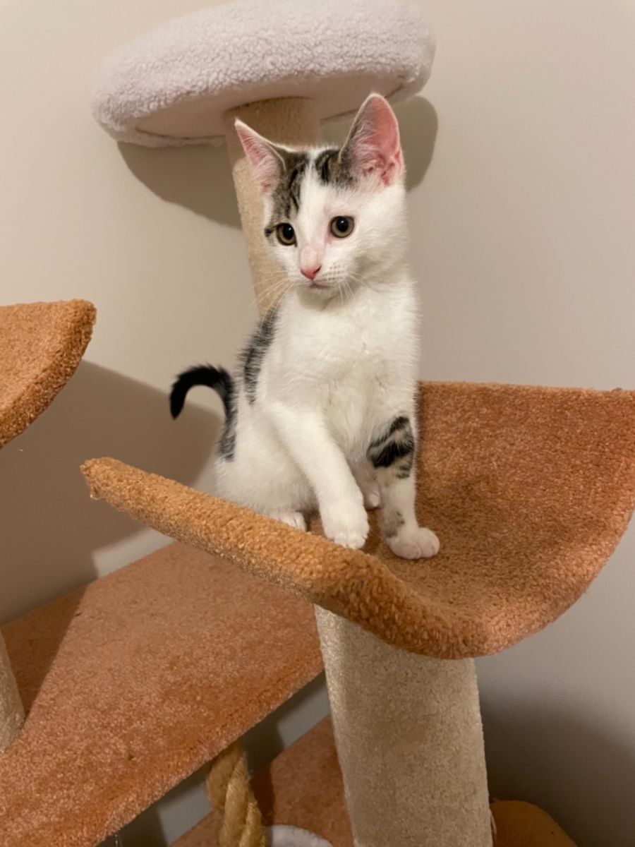 Micah is a confident kitten who likes to be involved in day to day activities. He would love a forever home that has children who match his energy level or even a home with a resident feline who he can play with.