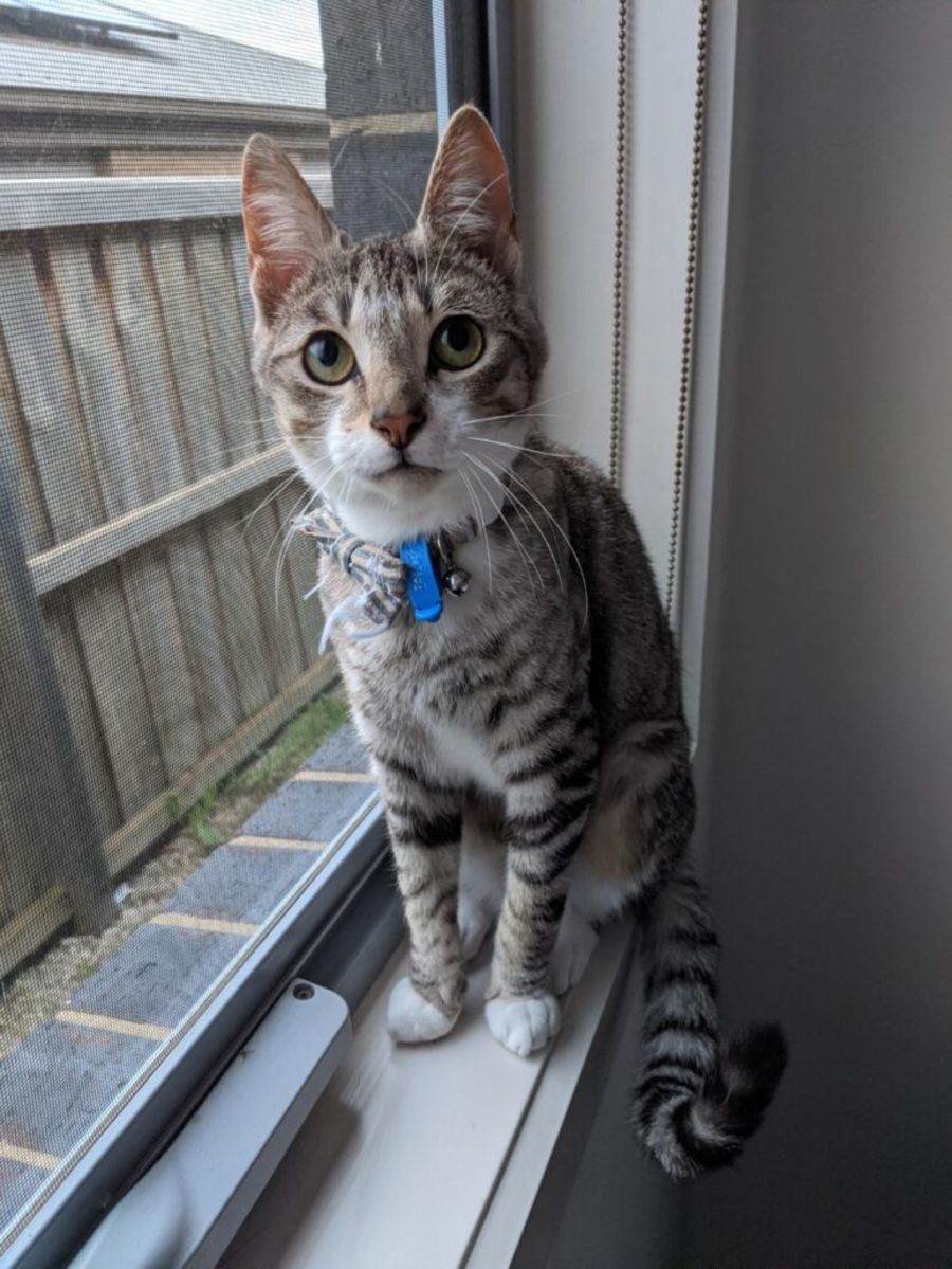 I'd like to describe myself as a sleek, slender, silver tabby who absolutely adores attention and affection. I really enjoy playing with toys, eating food and screaming at you when I'm not receiving attention. I also love chasing my foster fur sisters and brother around the house and getting into mischief with them.