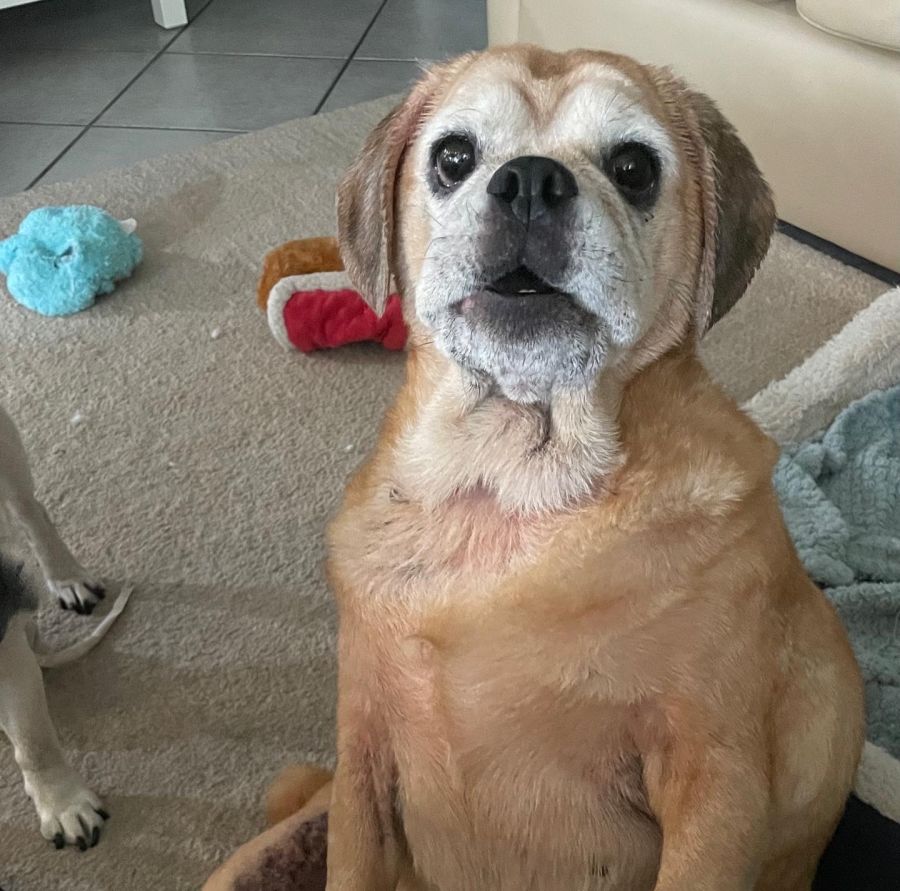 She is ready to start the search for her new forever home where someone is committed to a good diet, regular washes, daily exercise for weight loss and mental stimulation (she’s part Beagle so her nose needs to work) and is home often.