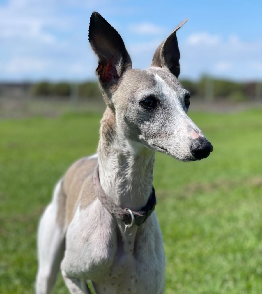 Lady is a pure bred Whippet, who weighs just 12kgs. She has a beautiful nature, very gentle, but playful and full of fun.