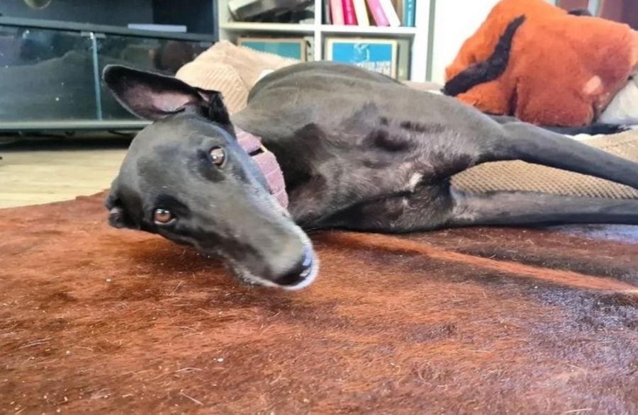 Due to his goofy nature and no spatial awareness Merlin is going to need someone who can handle a big chonky dork of a greyhound with no young children (in case he was to knock them over!) Merlin is, however, currently residing with four other male greyhounds and is coping quite well. You can certainly tell that he wants the human cuddles all to himself though!