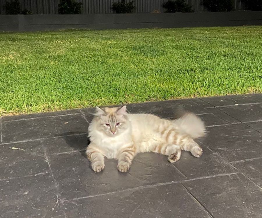 Armani is a very gentle and friendly cat. She spends time both in her previous owner's backyard during the day and has a little indoor time in the evenings. She cannot get out of the backyard due to the type of fencing and gates and so has never wandered in the streets so has been living in a restricted indoors/outdoors home. She sleeps most nights in the laundry but can sleep in a sheltered area outside too. She eats a dry food daily as well as wet food and especially likes the Felix jelly brand. She isn’t a a fussy or demanding cat at all and is very independent. She is toilet trained.